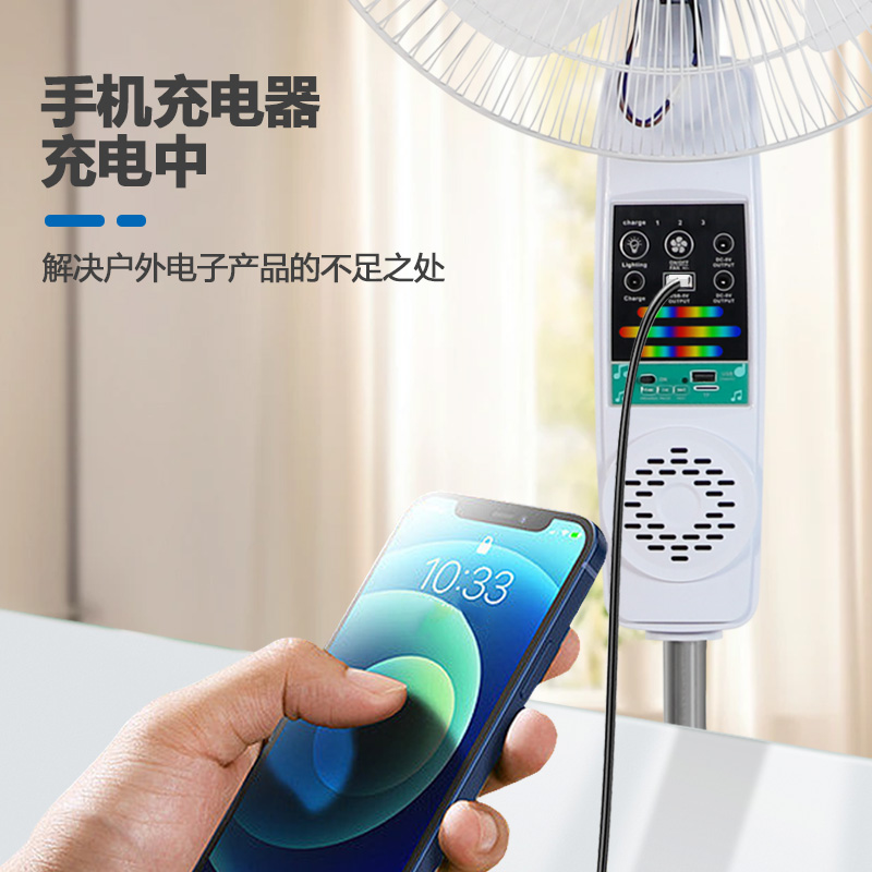2.太阳能风扇,太阳能板、TPYE-C、适配器多方向充电。