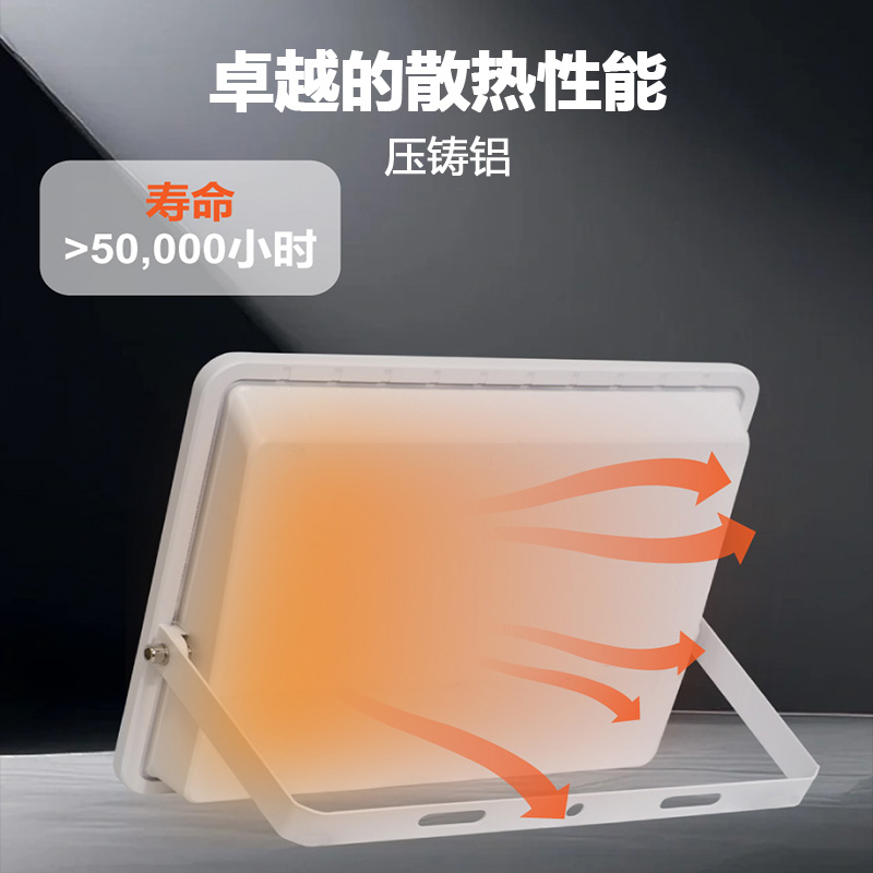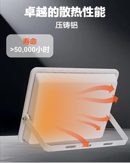 6.卓越的散热性能,铝灯体压铸铝,寿命>50000小时。