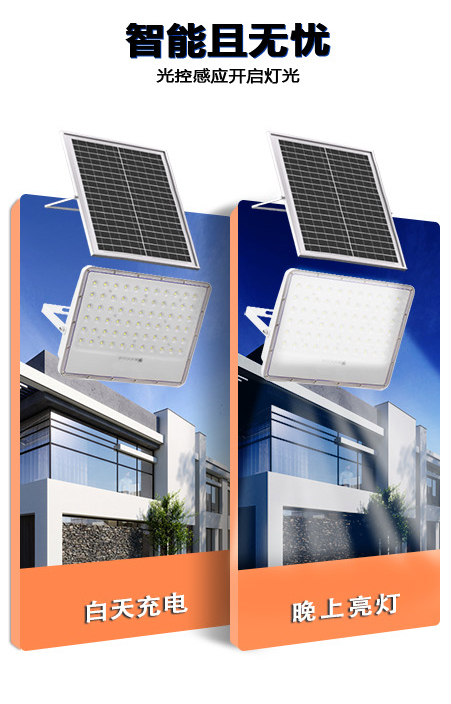 8.智能且无忧,光控感应开启灯光,白天充电,晚上亮灯。