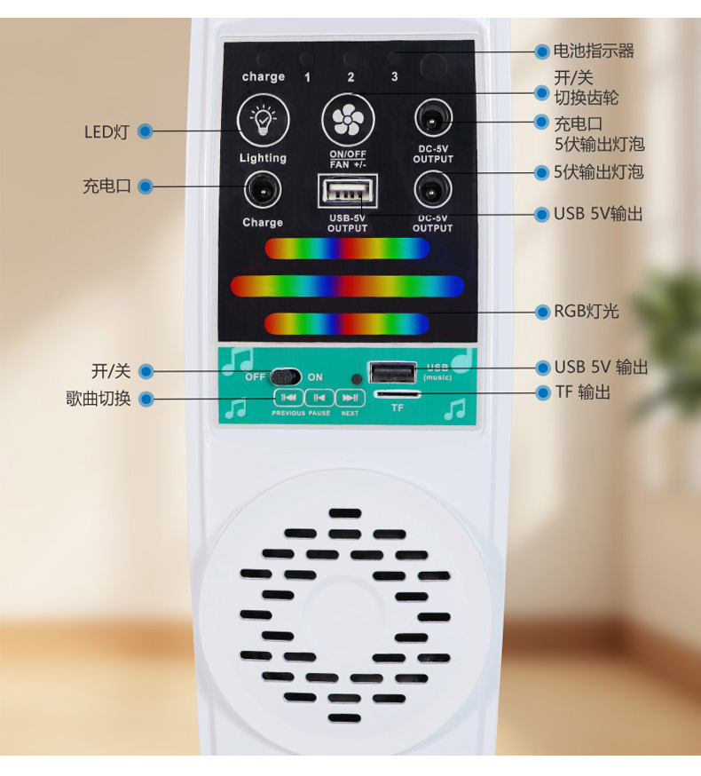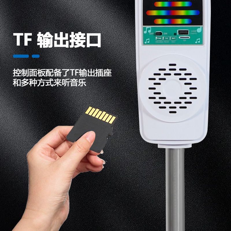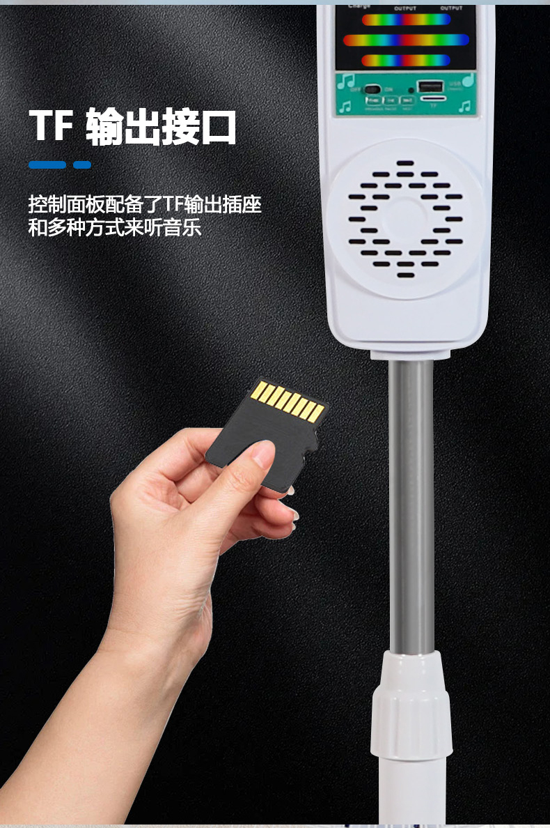 6.TF输出接口,控制面板配备了TF输出插座和多种方式来听音乐。
