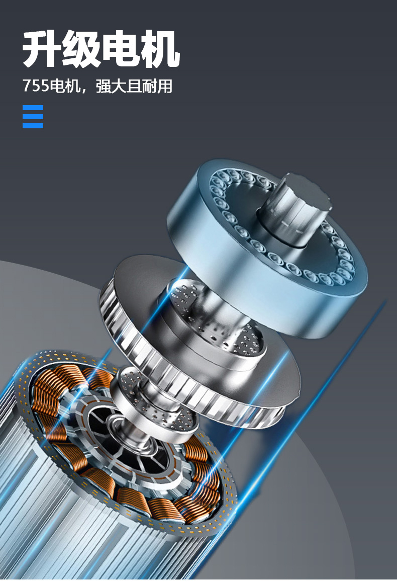 9.升级电机,755电机,强大且耐用。