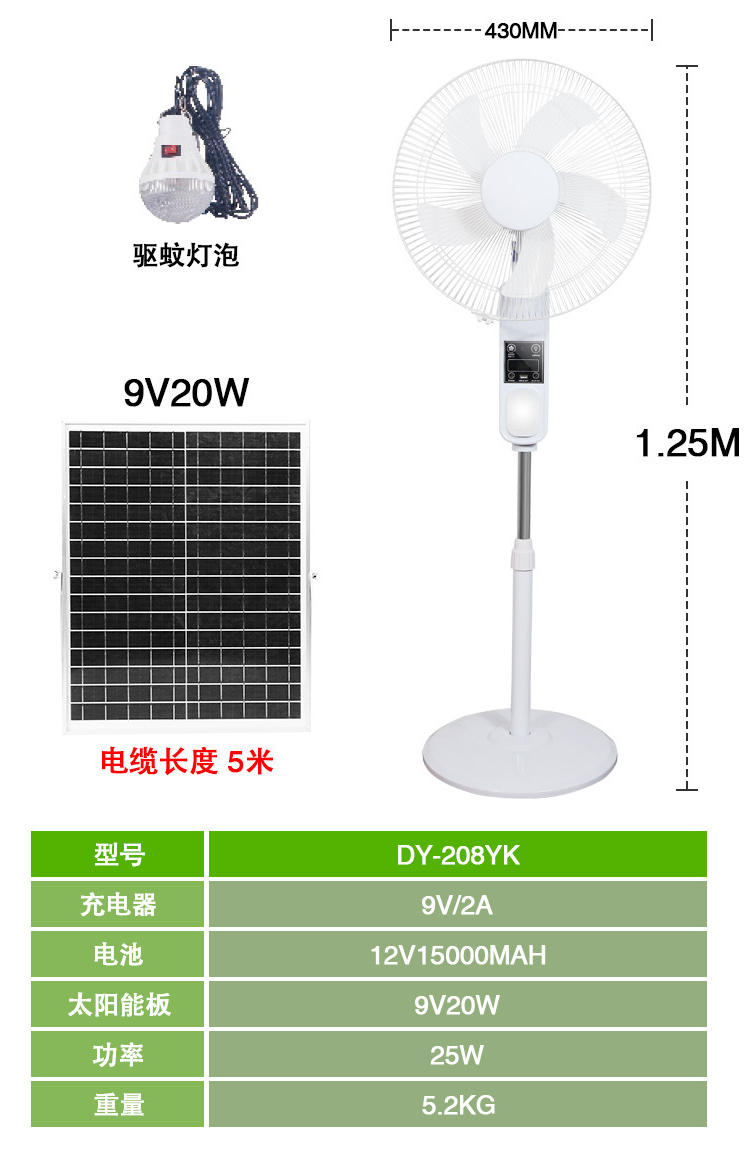 3.多功能操作面板:6档风力调节、LED灯光控制、电量和齿轮显示、充电口5V输出灯泡、USB 5V输出。